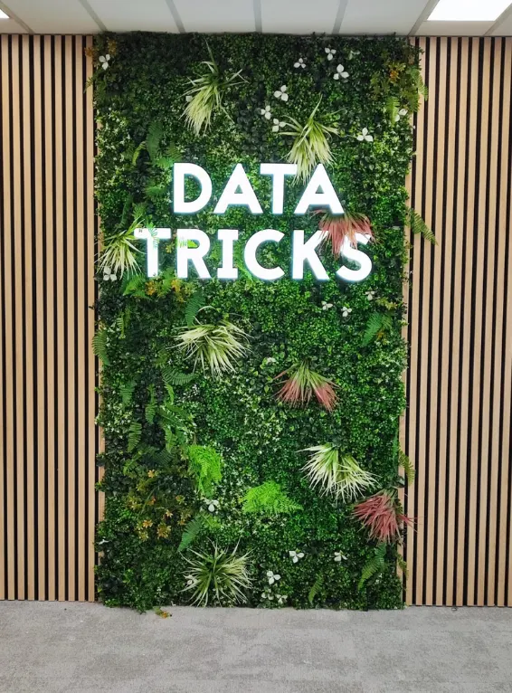 Lettrage boitier lumineux et mur Vegetal pour DATA TRICKS